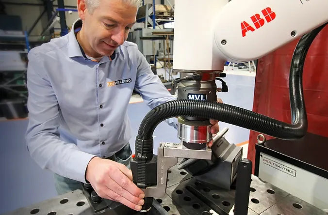De IXON wordt in de cobotcontroller geklikt en aangesloten. (24VDC + Ethernet + Internet) RobWelding maakt een account aan, zodat zij de cobot van afstand kunnen benaderen. Als er verbinding gemaakt is, kan de cobot net zo bediend worden als wanneer de PC of Laptop direct aan de servicepoort aangesloten is.